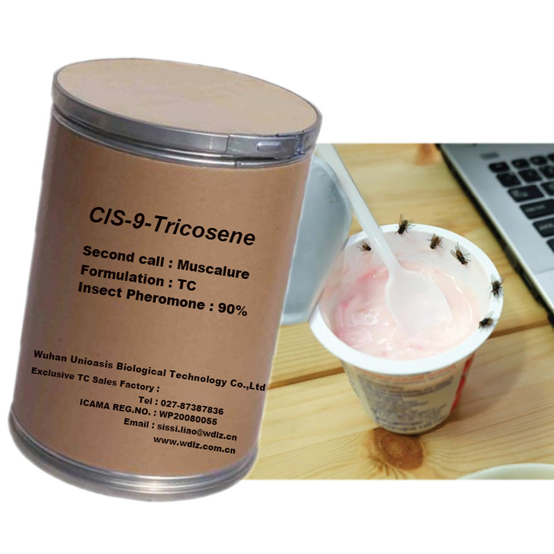 Z-9-Tricosene یک فرومون جنسی است که توسط مگس های خانگی ماده (Musca domestica) برای جذب نر تولید می شود. در زنبورها، این یکی از فرومون های ارتباطی است که در طول رقص تکان دادن آزاد می شود.این محصول یک فرومون حشره ای است که توسط شرکت ما با استفاده از یک روش ترکیب شیمیایی تولید شده است. این اثر جذابی خوبی بر سوسک ها و مگس ها دارد. می تواند در هنگام استفاده در ترکیب با حشرات کش، اثربخشی حشرات کش را بهبود بخشد.این محصول فقط به عنوان یک کشش دهنده در حشره کش استفاده می شود.