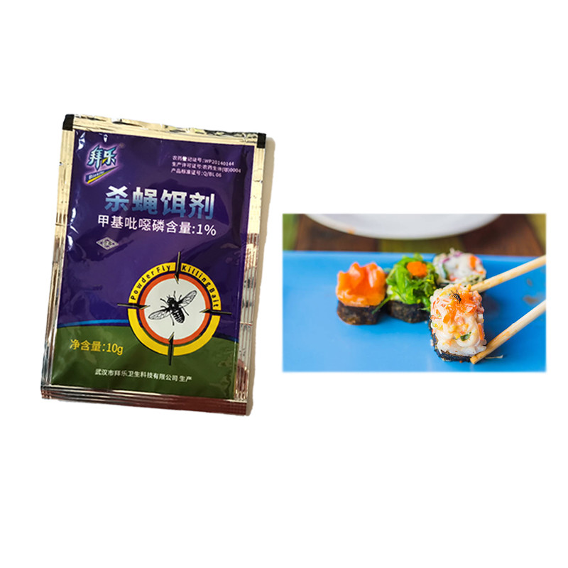 The product contains fly attractant to lure flies into feeding. Flies experience stomach poison death through both feeding and contact with the poison.